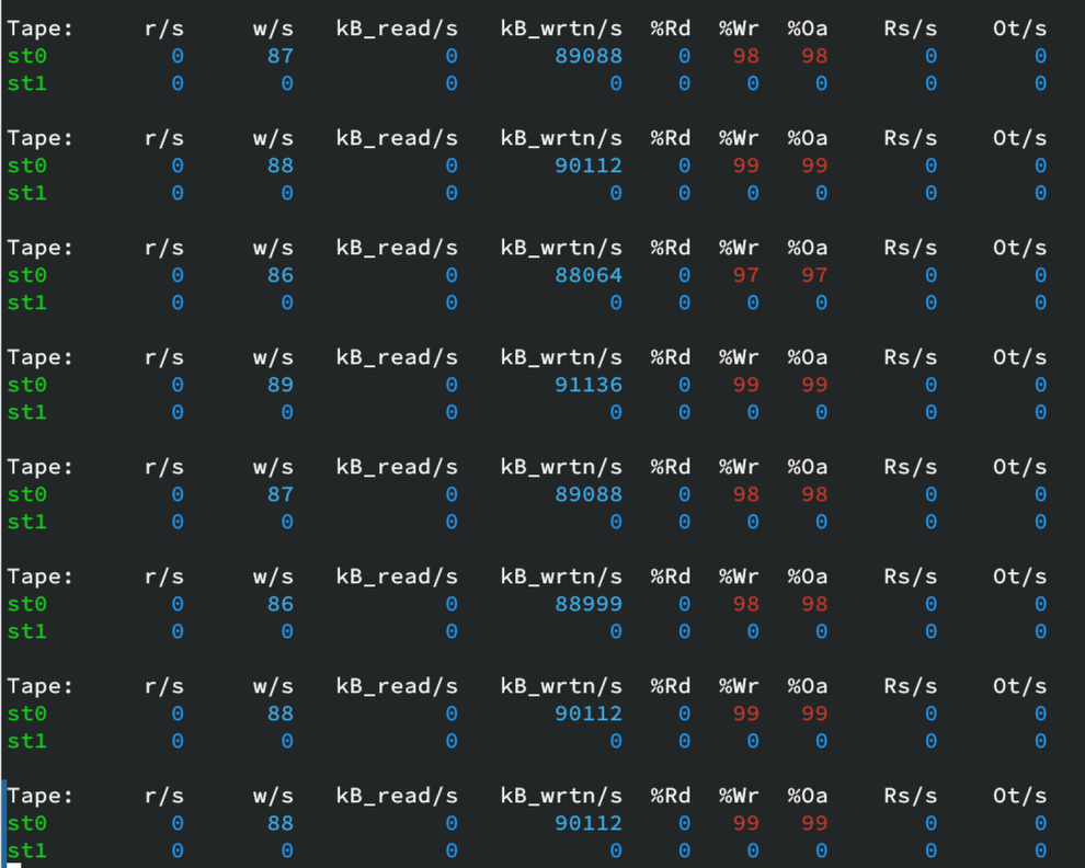 2. Do tape performance tests with incompressible random data, everything else will produce bogus results that are totally misleading. The data size must also be bigger than the buffer size of the drive, otherwise the drive will just write from its buffer and not from the host, which will also produce bogus results.